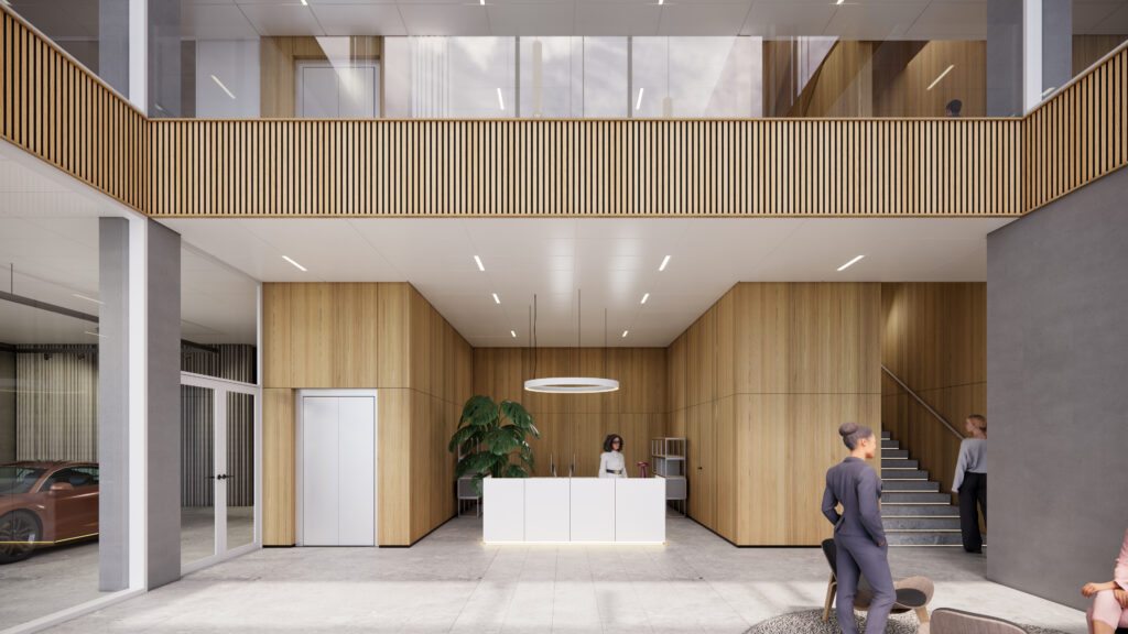Domicilet opføres som to sammenkoblede bygningsdele – én administrationsbygning og én værkstedsbygning – med en central kerne, der rummer fælles funktioner såsom reception, kaffe-lounge og elevatorer. Et særligt arkitektonisk træk er et lyst atrium over tre etager med dagslys og åbne forbindelser, der former hjertet i administrationsbygningen. I stueetagen vil et eksklusivt showroom mod vest fungere som et åbent og indbydende rum til udstillinger, konferencer og netværksmøder, mens der øverst på 4. etage etableres fælles kantine, mødelokaler og en stor tagterrasse.